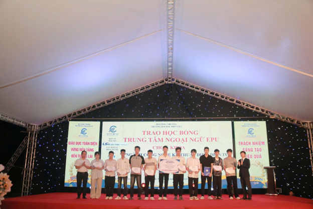 Đặc biệt, Gala cũng là dịp vinh danh và trao thưởng cho những tân sinh viên xuất sắc. Nguyễn Văn Tuấn (lớp D20H3 – Thủ khoa ngành CNKT Điện, Điện tử) và Nghiêm Nhật Hà (lớp D20ROBOTTĐHCN2 – Thủ khoa ngành Kỹ thuật Robot) đã vinh dự nhận 2 suất học bổng đặc biệt do Công ty LS tài trợ. Ngoài ra, Trung tâm Tiếng Anh EPU cũng đã trao nhiều suất học bổng giá trị cho á khoa và các sinh viên có điểm trúng tuyển cao.
