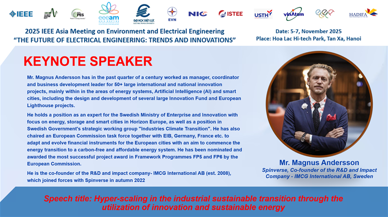 GIỚI THIỆU DIỄN GIẢ CHÍNH TẠI HỘI NGHỊ IEEE EEE.AM 2025: ÔNG MAGNUS ANDERSSON - ĐỒNG SÁNG LẬP CÔNG TY NGHIÊN CỨU, PHÁT TRIỂN VÀ TÁC ĐỘNG - IMCG INTERNATIONAL AB, THỤY ĐIỂN