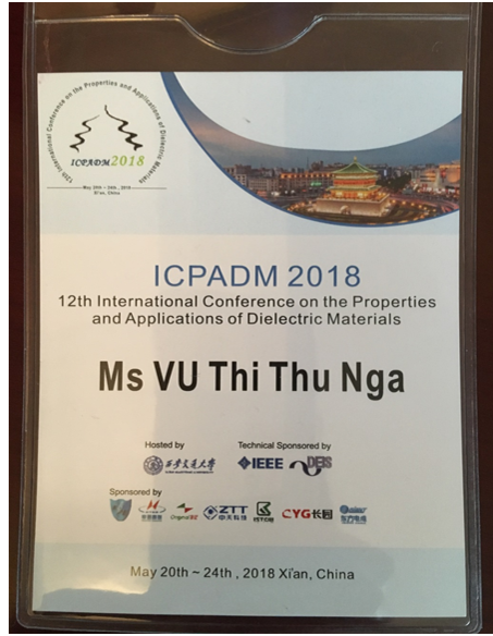 ICPADM 2018,được tổ chức vào tháng 5/2018 tại Tây An – Trung Quốc, là hội thảo lần thứ 12 của loạt chuỗi hội thảo trong lĩnh vực này và có sự tham gia của gần 300 nhà khoa học và các công ty sản xuấtcủa nhiều nước như Anh, Pháp, Ý, Tây ban Nha, Úc, Hàn Quốc, Nhật Bản, Ấn độ, Trung quốc… với hơn 450 báo cáo nghiên cứu trong lĩnh vực trong lĩnh vực vật liệu điện môi.