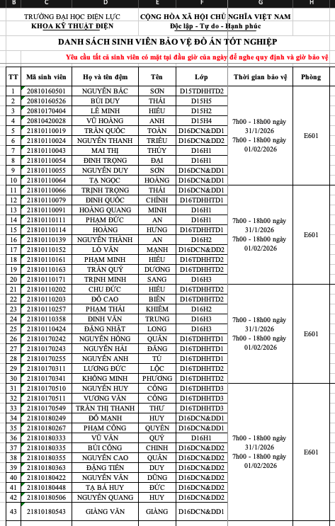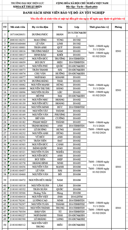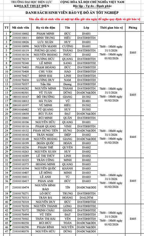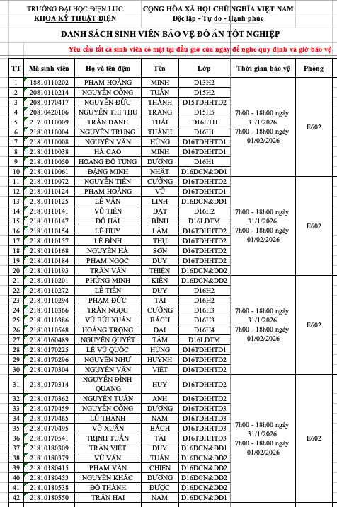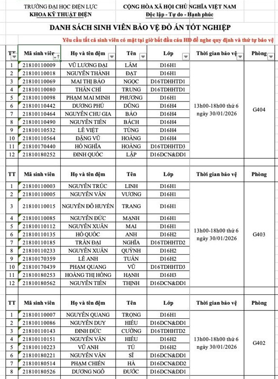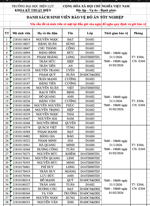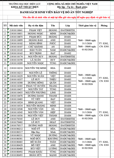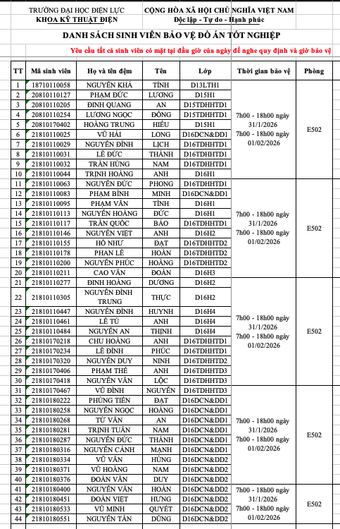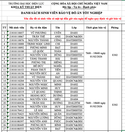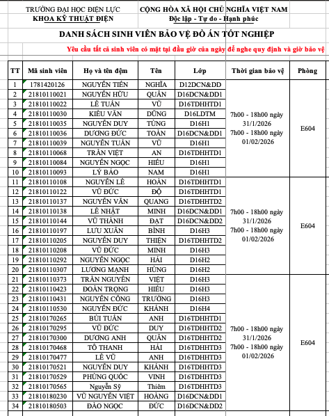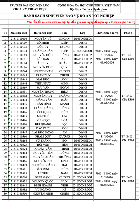 THÔNG BÁO DANH SÁCH PHÒNG CHẤM ĐỒ ÁN TỐT NGHIỆP D16 VÀ KHÓA CŨ